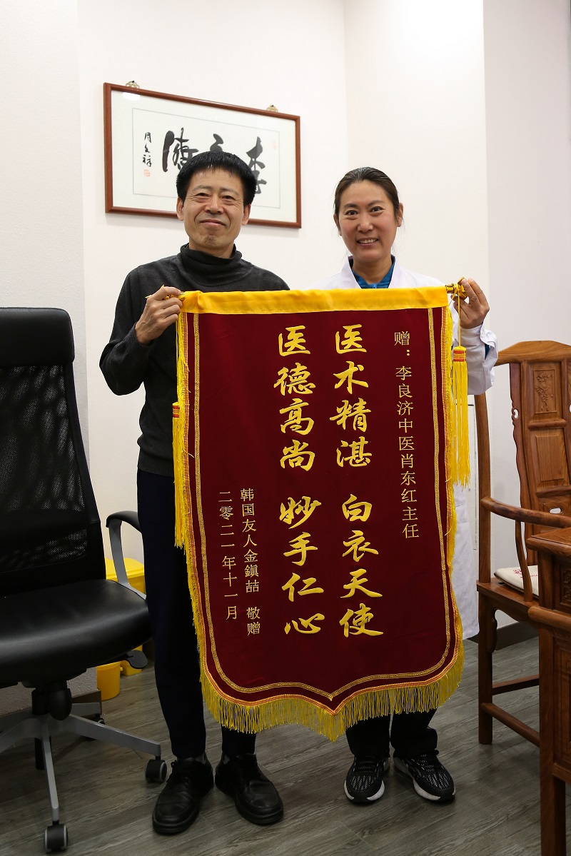 “肖醫生,我最近睡眠好多了,人也有活力了,非常感謝!”近日一位來自韓國的友人金鎮喆先生,將一面錦旗送到李良濟月光碼頭店肖......